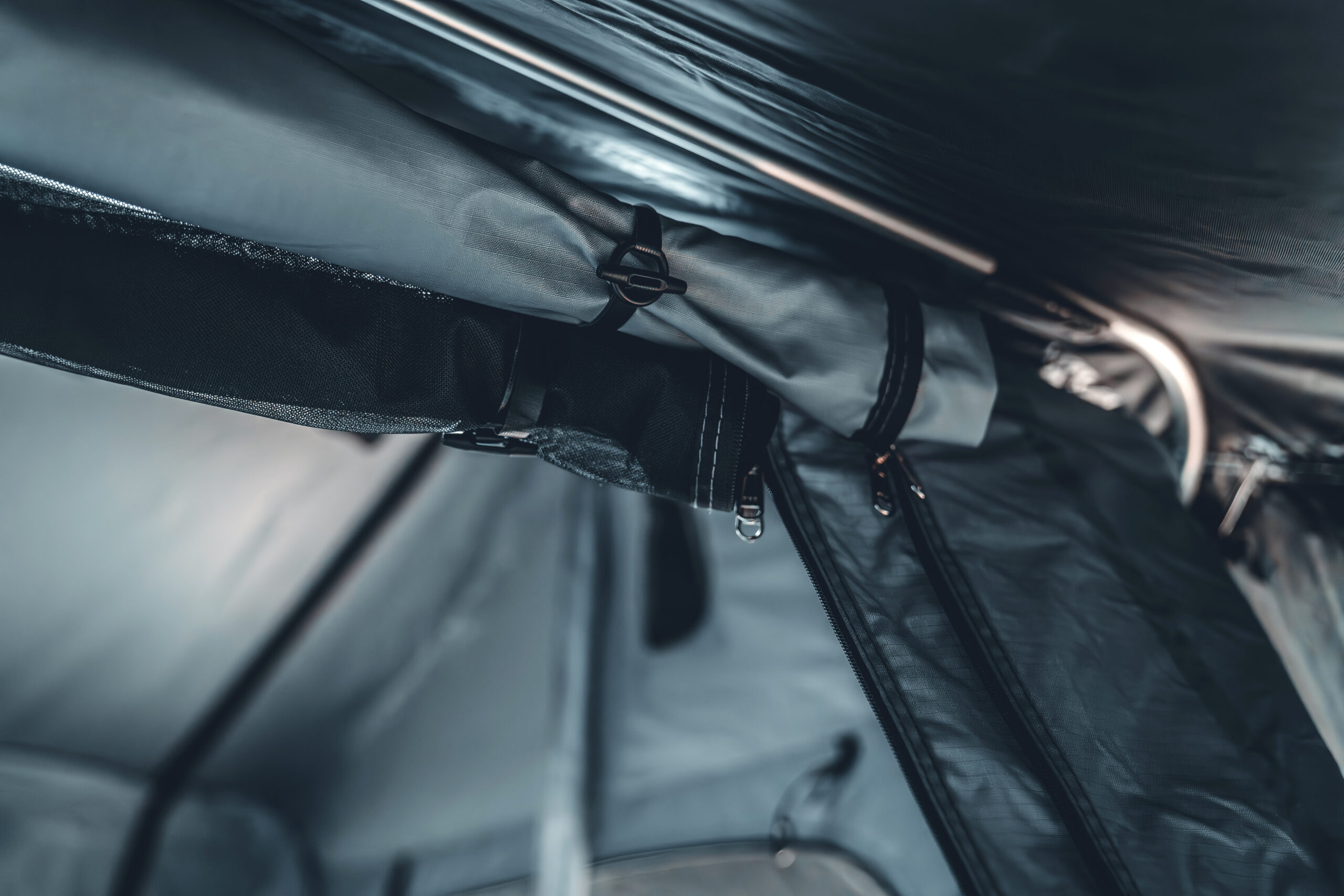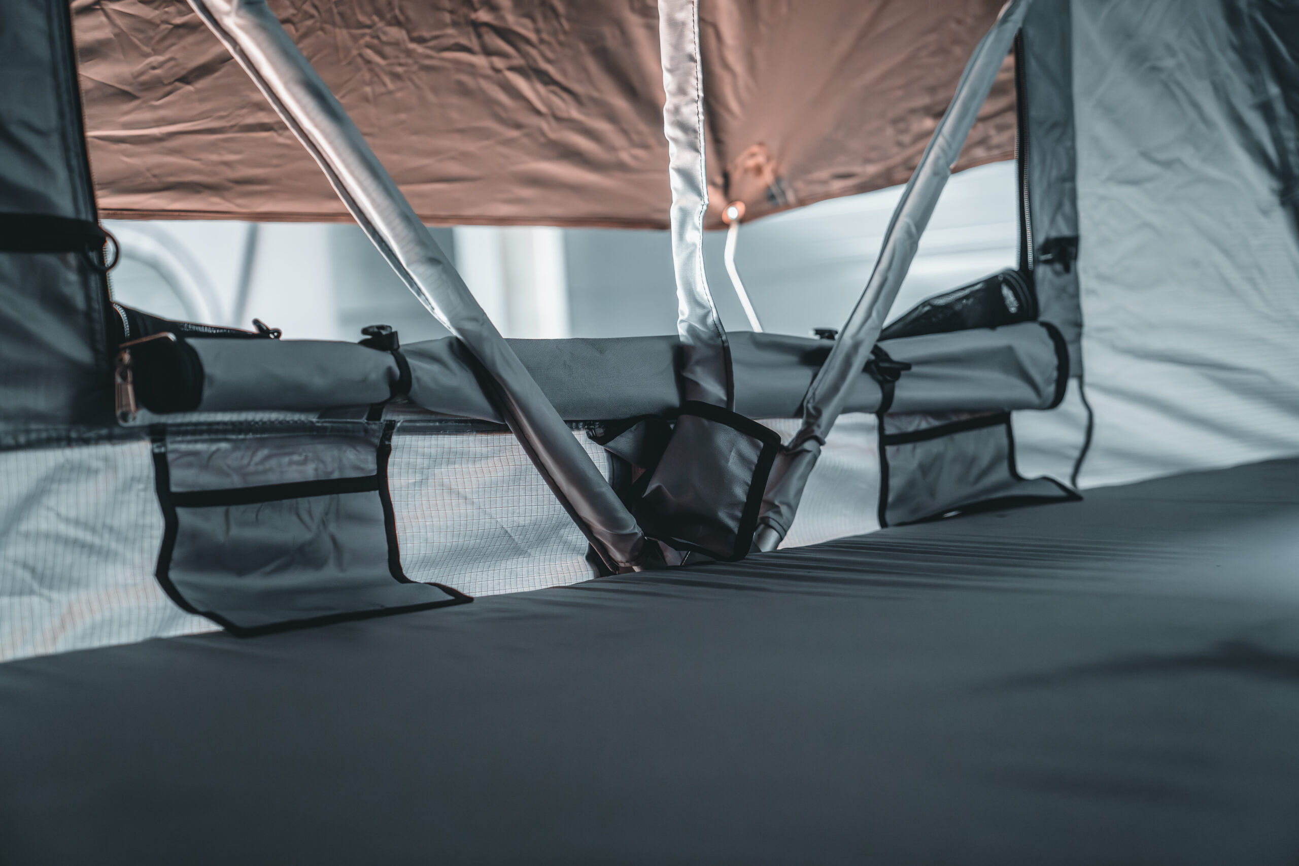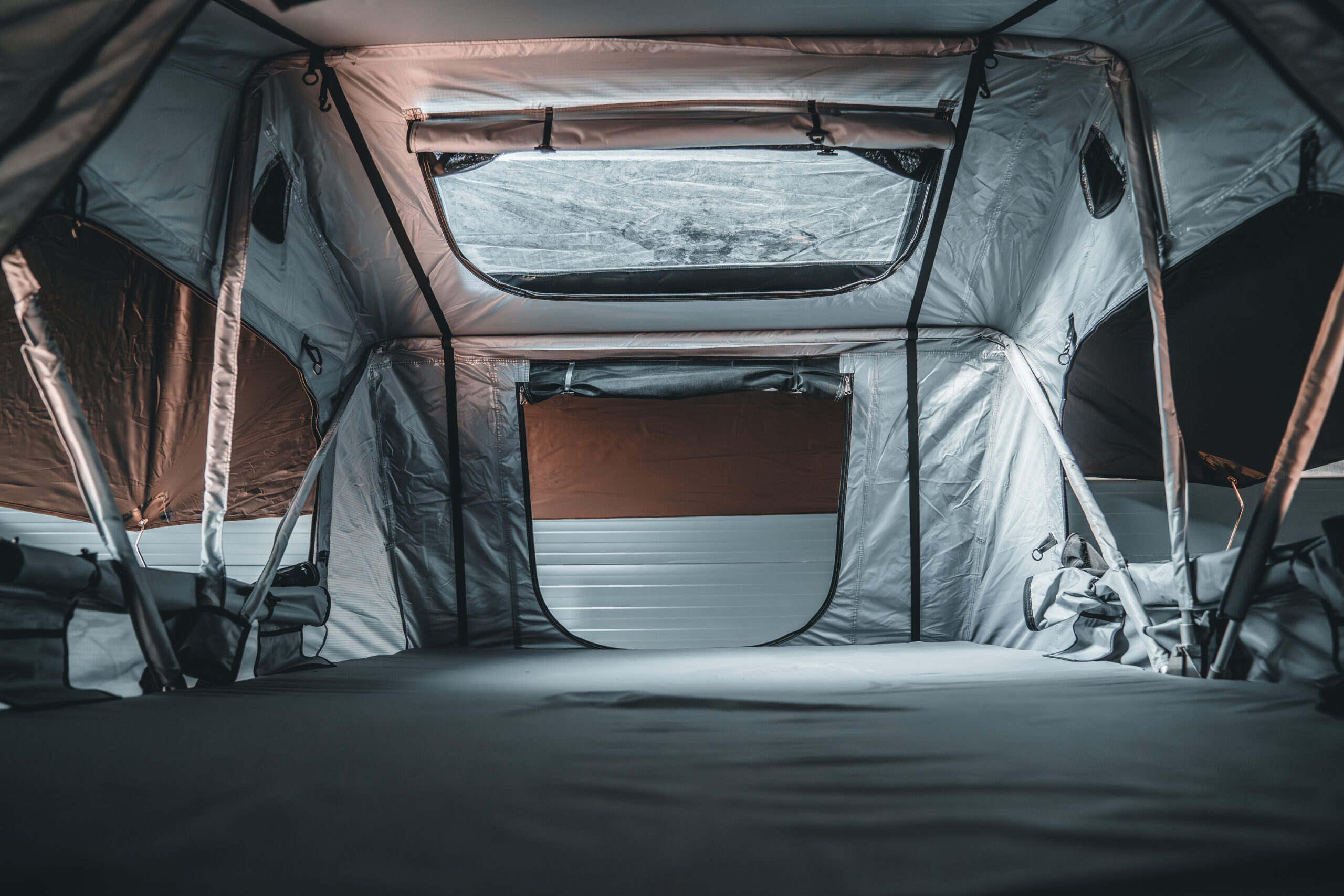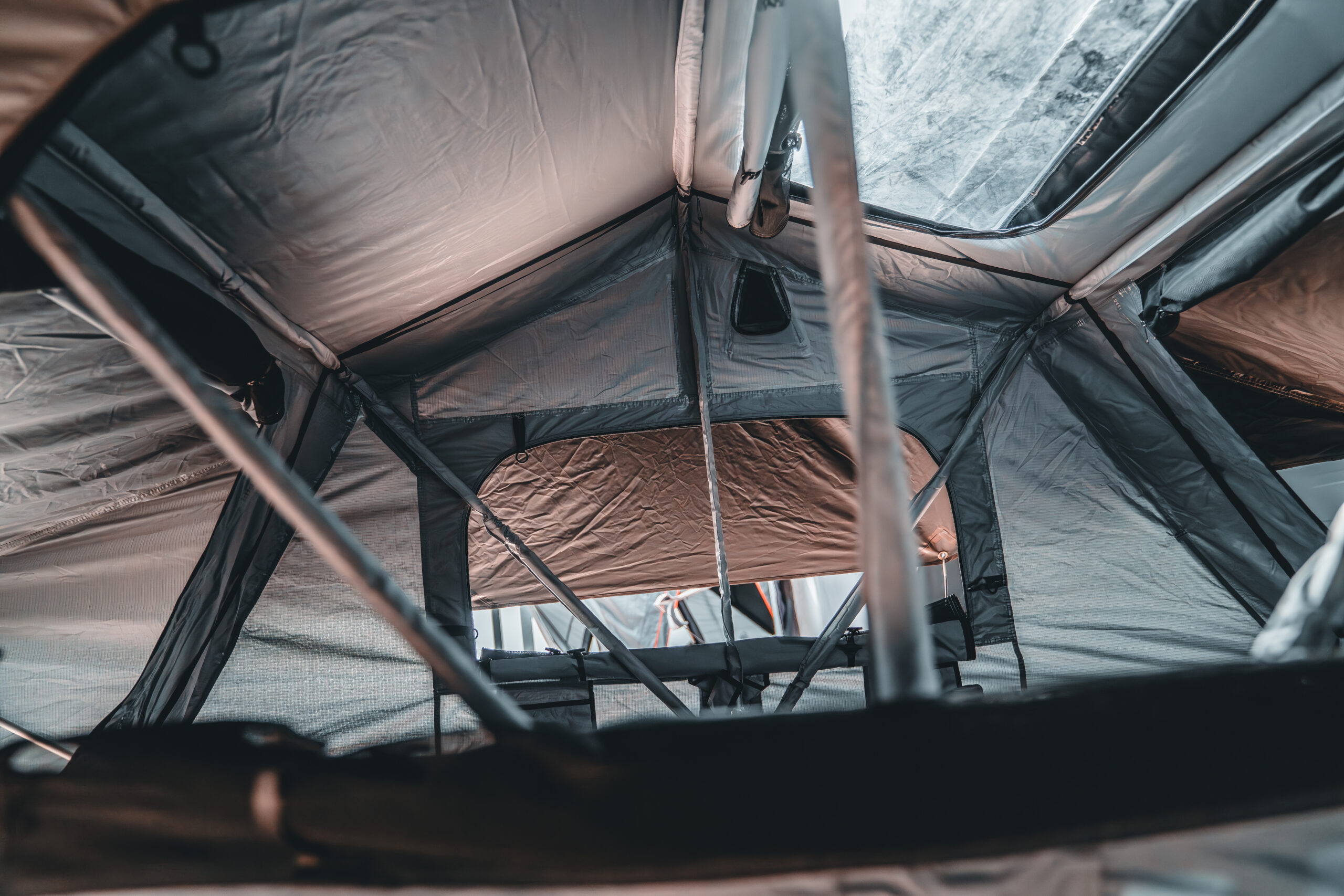 Die neue Premiummatratze bietet auf 160 x 240cm sensationellen Komfort. Innen im Zelt kannst Du natürlich auch weiterhin problemlos aufrecht sitzen. Alle Innenstangen sind mit Stoff ummantelt zum Schutz gegen Kondenz und Kälte. Wie gehabt lassen sich alle Fenster verdunkeln und sind mit Moskitonetzen ausgestattet. Unsere Dachzelte sind Sturm erprobt und hundertfach von unseren Käufern in ganz Europa getestet.