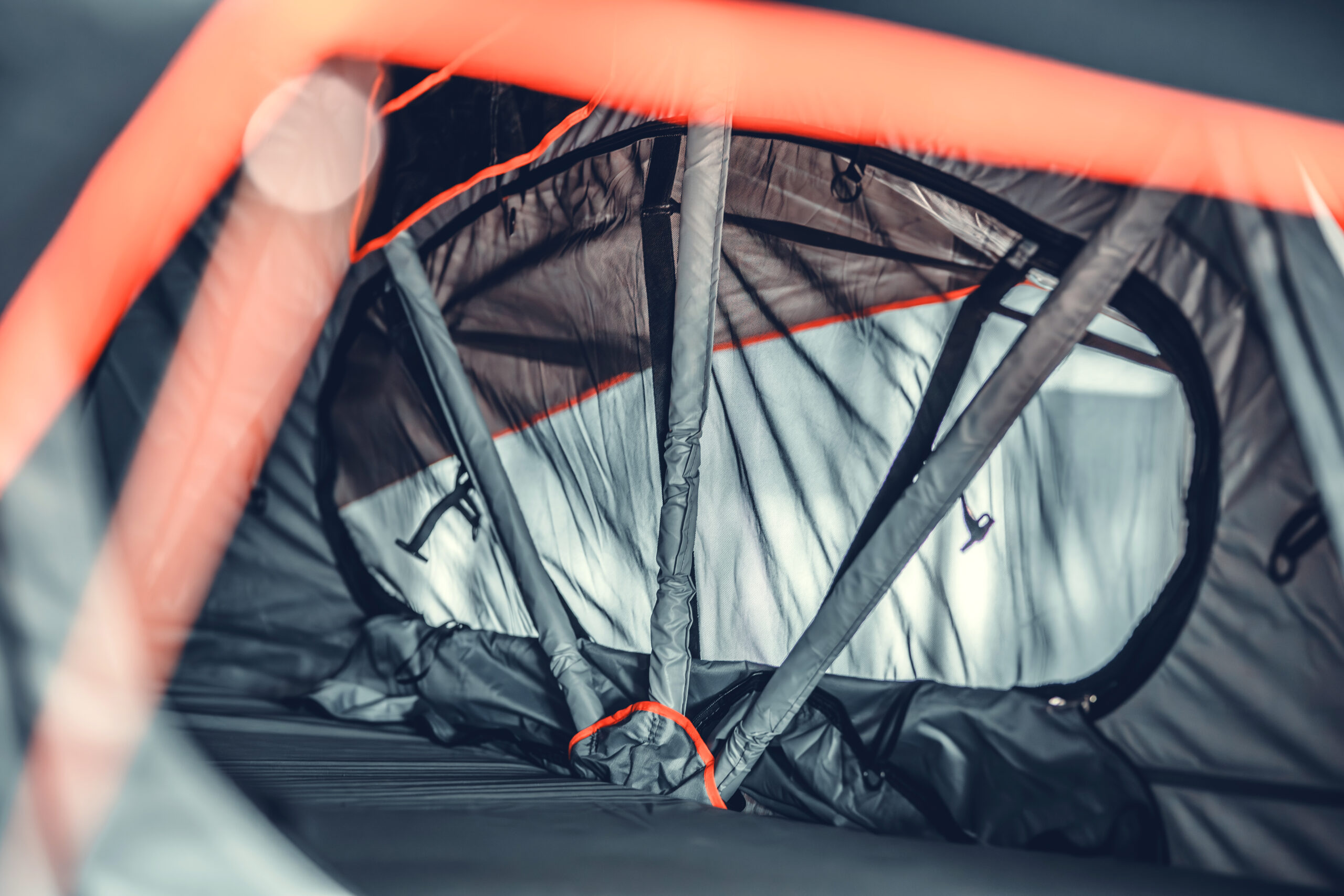 Lasst uns über Design sprechen. Wir haben uns große Mühe gegeben das GEAR2 optisch auf das nächste Level zu heben. Das zweifarbige Design in schwarz / grau mit orangenen Kedern und dem neu designten Rainfly passt nicht nur neutral zu fast jedem Fahrzeug, sondern wird auch auf jedem Campingspot die Blicke auf sich ziehen.