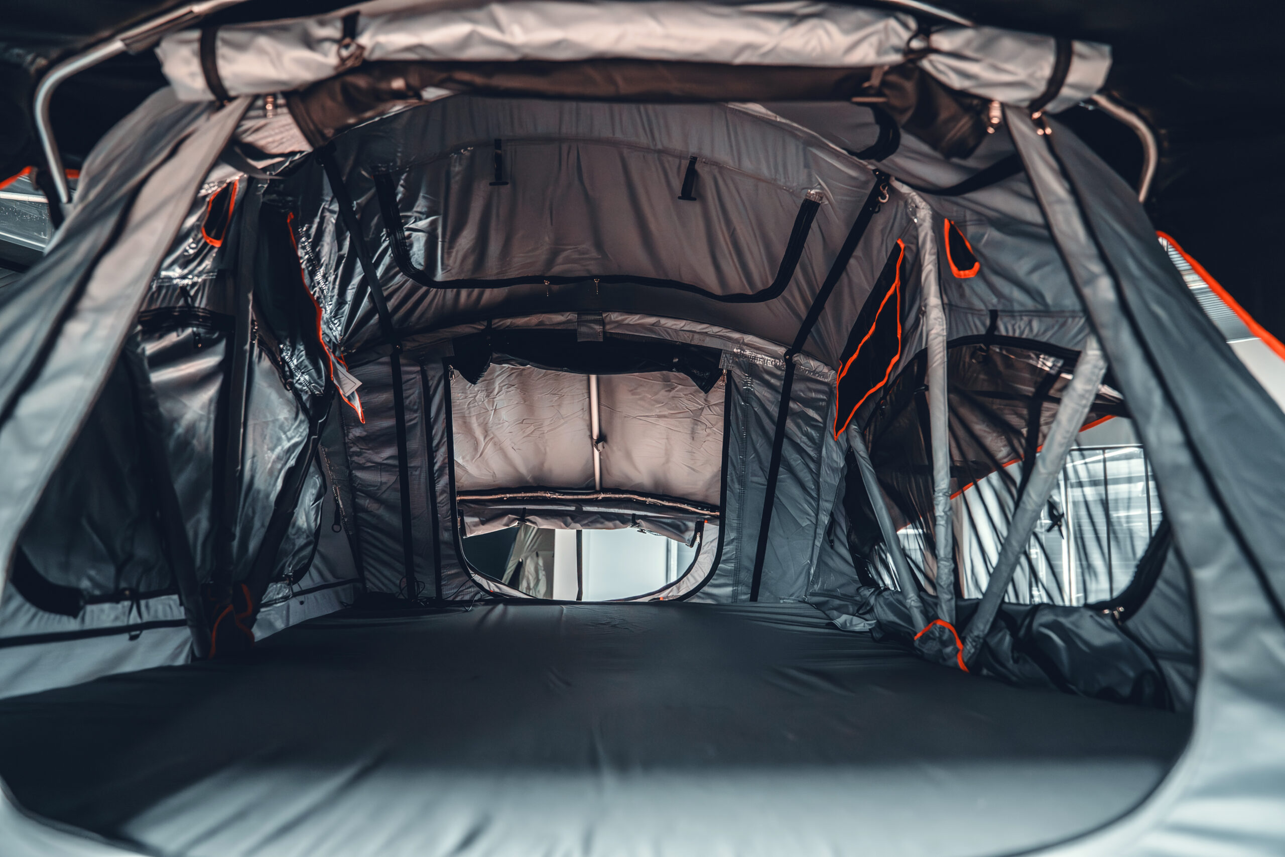 Die neue Premiummatratze bietet auf 140 x 240cm sensationellen Komfort. Innen im Zelt kannst Du natürlich auch weiterhin problemlos aufrecht sitzen. Alle Innenstangen sind mit Stoff ummantelt zum Schutz gegen Kondenz und Kälte. Wie gehabt lassen sich alle Fenster verdunkeln und sind mit Moskitonetzen ausgestattet. Unsere Dachzelte sind Sturm erprobt und hundertfach von unseren Käufern in ganz Europa getestet.